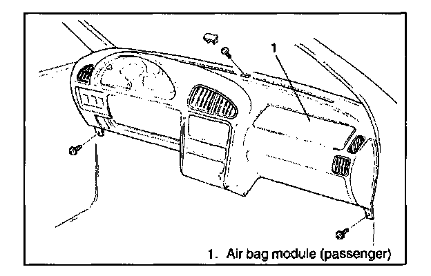 - When handling the air bag (inflator) modules (driver and passenger), be careful not to drop it or apply an impact to it. If an excessive impact was applied (e.g., dropped from a height of 91.4 cm (3 feet or more), never attempt disassembly or repair but replace it with a new one.