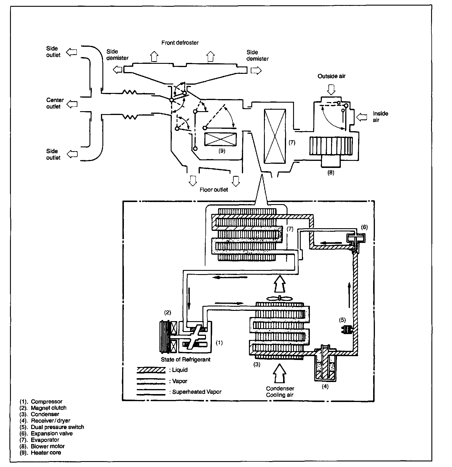 Major Components And Refrigerant Flow Of Air Conditioning System: