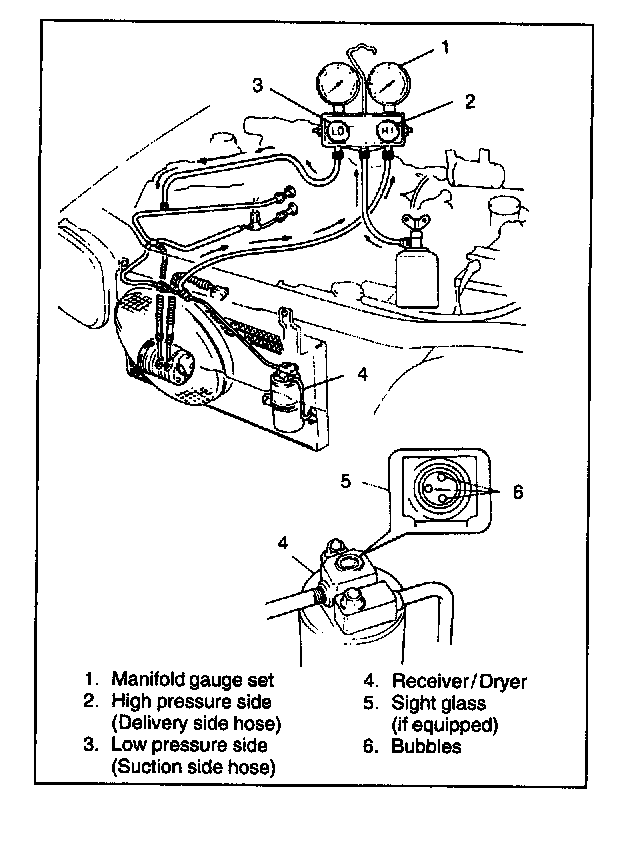 If receiver/dryer equips sight glass, lock into the sight glass of receiver/dryer and check that there are no bubbles in it, which means that the system is fully charged.