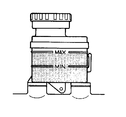 Fluid level should be between MIN and MAX lines marked on reservoir.