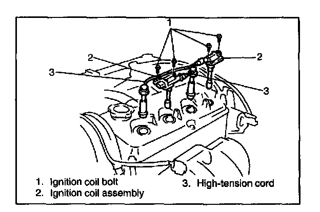 2. Disconnect high-tension cord from Ignition coil assembly.