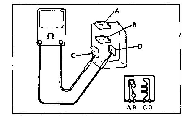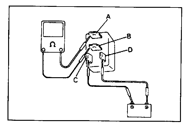4. Check that there is continuity between terminals "A" and "B" when battery is connected to terminals "C" and "D".