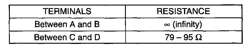 3. Check resistance between each two terminals as in table. If check results are as specified, proceed to next operation check. If not, replace.