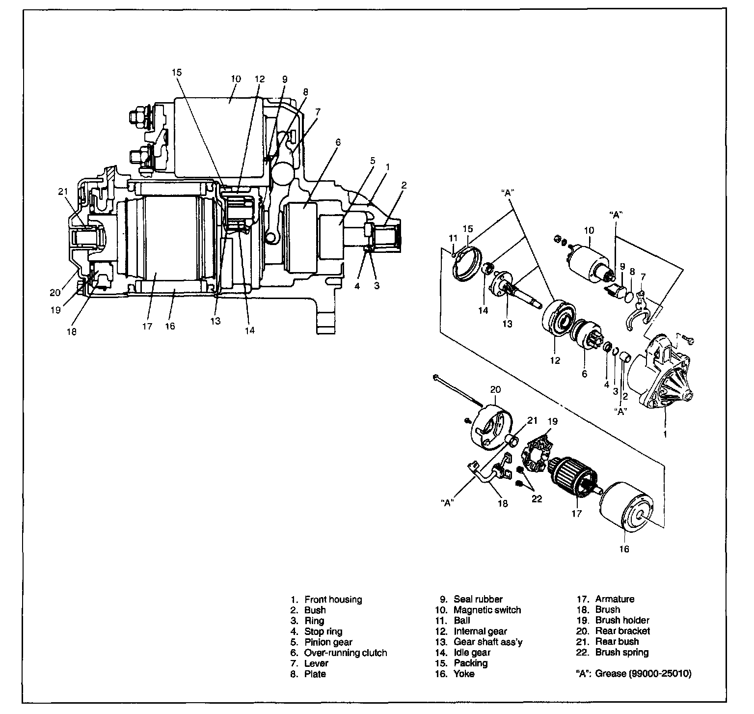Starting motors do not require lubrication except during overhaul. When the motor is disassembled for any reason, lubricate as shown in the figures.