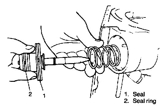 a. Put piston spring in transmission case and insert piston assembly into case after applying fluid to piston rod, seal and seal ring.