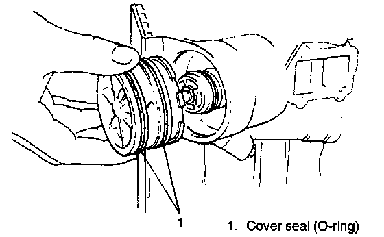b. Install piston cover to case after applying fluid to 2 cover seals.