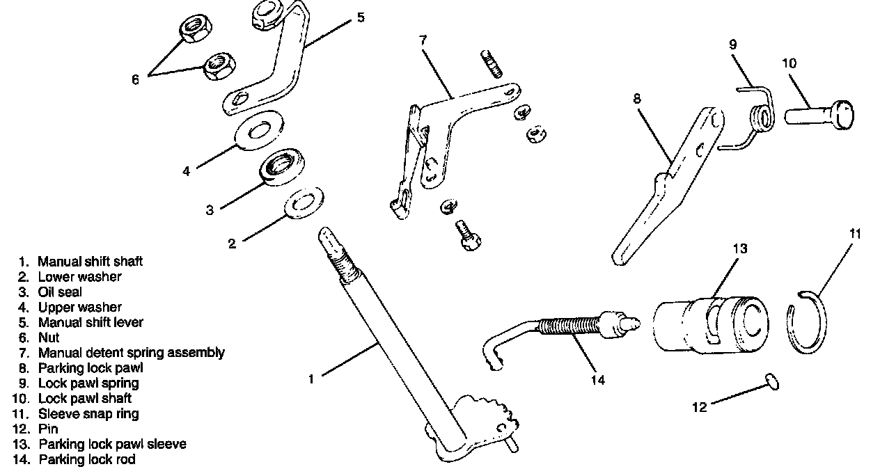 a. Install lower washer and parking lock rod to manual shift shaft.