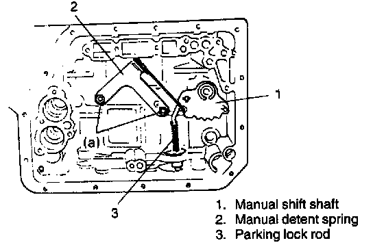 CAUTION: Care should be taken to put manual shift lever pin in between two flanges at end of manual shift valve.