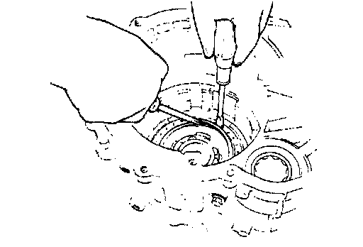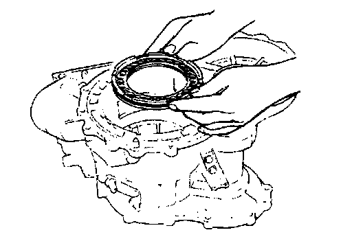 18. Install one-way clutch race snap ring into groove of transmission case.