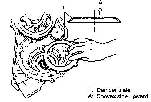 a. Install damper plate to return spring assembly with convex side upward. Use care not to install in reverse direction.