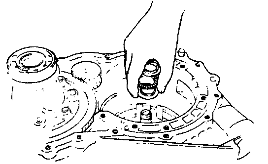 14. Install rear planetary ring gear races and bearing. Install in following order: