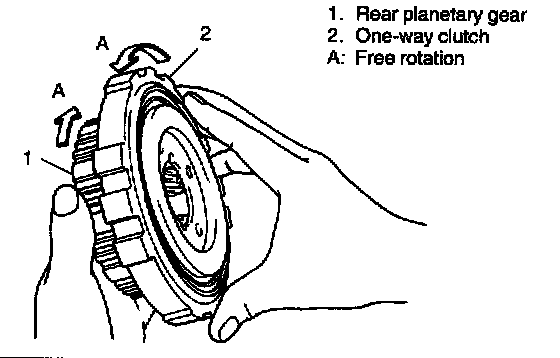 After installing one-way clutch to rear planetary gear, check to confirm that planetary gear turns clockwise but locks in the other way.