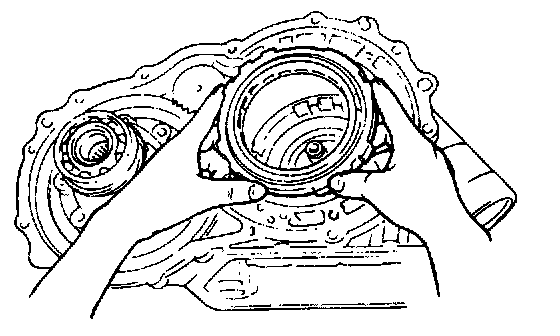 - Drive in differential by giving force to side bearing inner race through special tool (bearing installer).