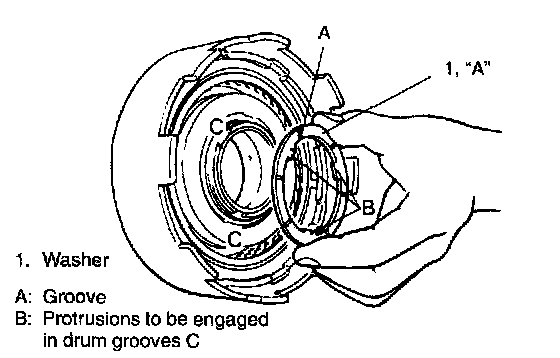 41. Attach greased direct clutch washer on oil pump. Fit washer flange into notch of oil pump body.