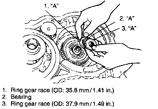 - With this bearing race, input shaft thrust play is adjusted. Refer to step 44 for measuring procedure.
