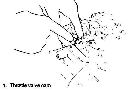 52. Connect oil pressure control cable on throttle valve cam. While holding cam down with fingers, slip cable end into slot.