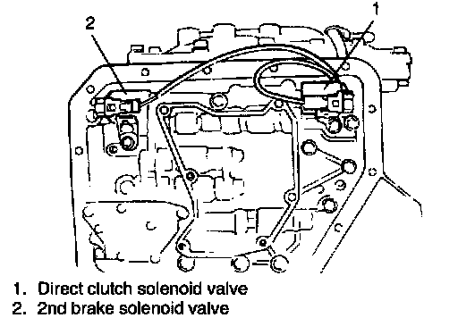 54. Connect 2 solenoid valve wires; one to direct clutch solenoid valve and the other to second brake solenoid valve.