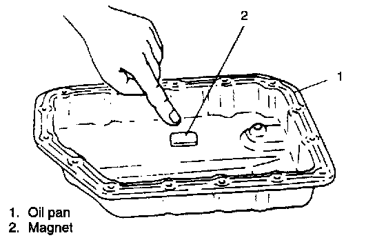 a. Install magnet in oil pan right under oil strainer.