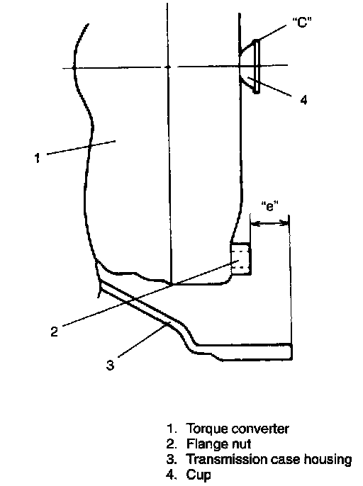 b. After installing torque converter, check to make sure that distance "e" is within specification.