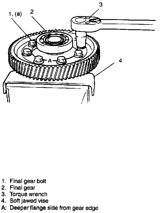 6. Hold differential assembly with soft jawed vise, install final gear and then tighten it with 8 bolts to specified torque.