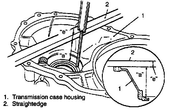 1. With gasket removed, measure dimension "a" of transmission case housing (from mating surface to bearing bore bottom) by using straightedge and vernier caliper.