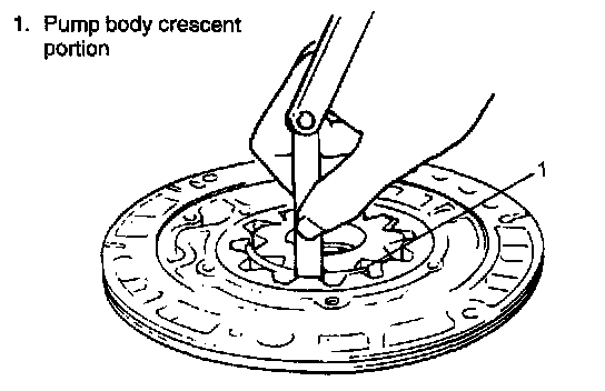3. Check tip clearance of both drive and driven gears. Measure radial clearance between gear tooth and crescent. If clearance exceeds its limit, replace gear.