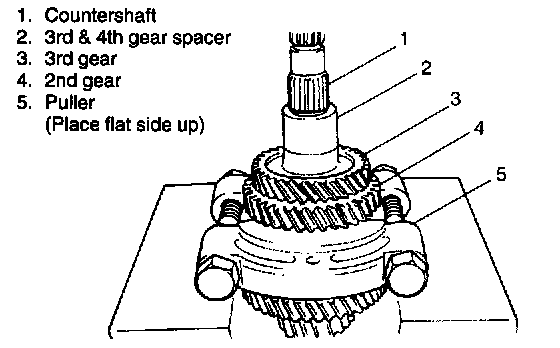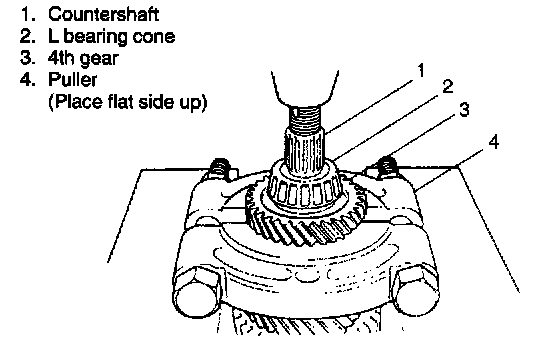 - To avoid tooth damage, support 4th gear at flat side of puller.