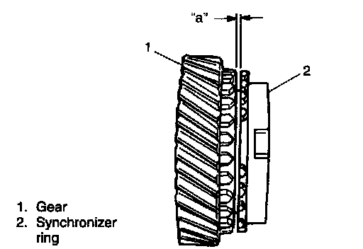 2. If synchronizer parts need to be repaired, check clearance "a" between ring and gear, each chamfered tooth of gear, ring and sleeve, then determine parts replacement.