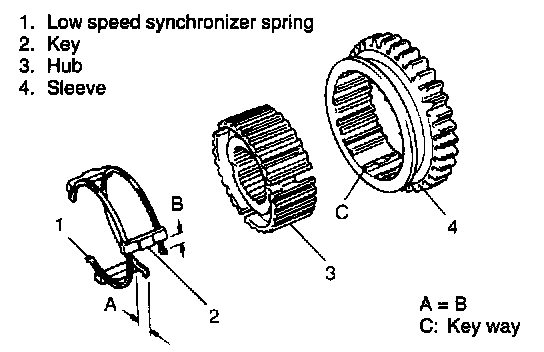 - No specific direction is assigned to low speed synchronizer hub or each key but it is assigned as assembly.