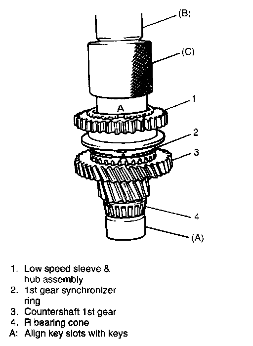 - Make sure that synchronizer ring key slots are aligned with keys while press-fitting sleeve & hub assembly.