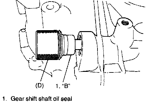 4. Apply grease to gear shift shaft oil seal at its lip and install it up to bottom of the bore by using special tool and hammer.