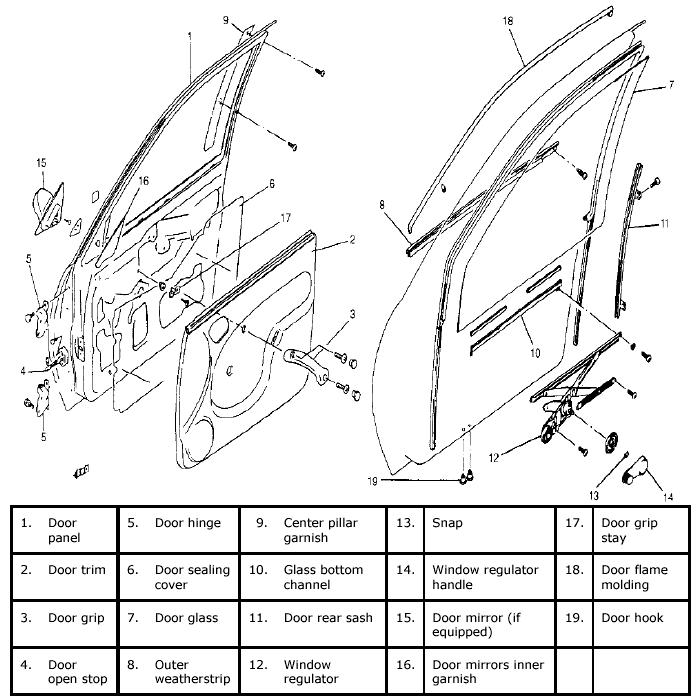 Front Door Window Regulator Removal and InstallationFront Door Glass Components: