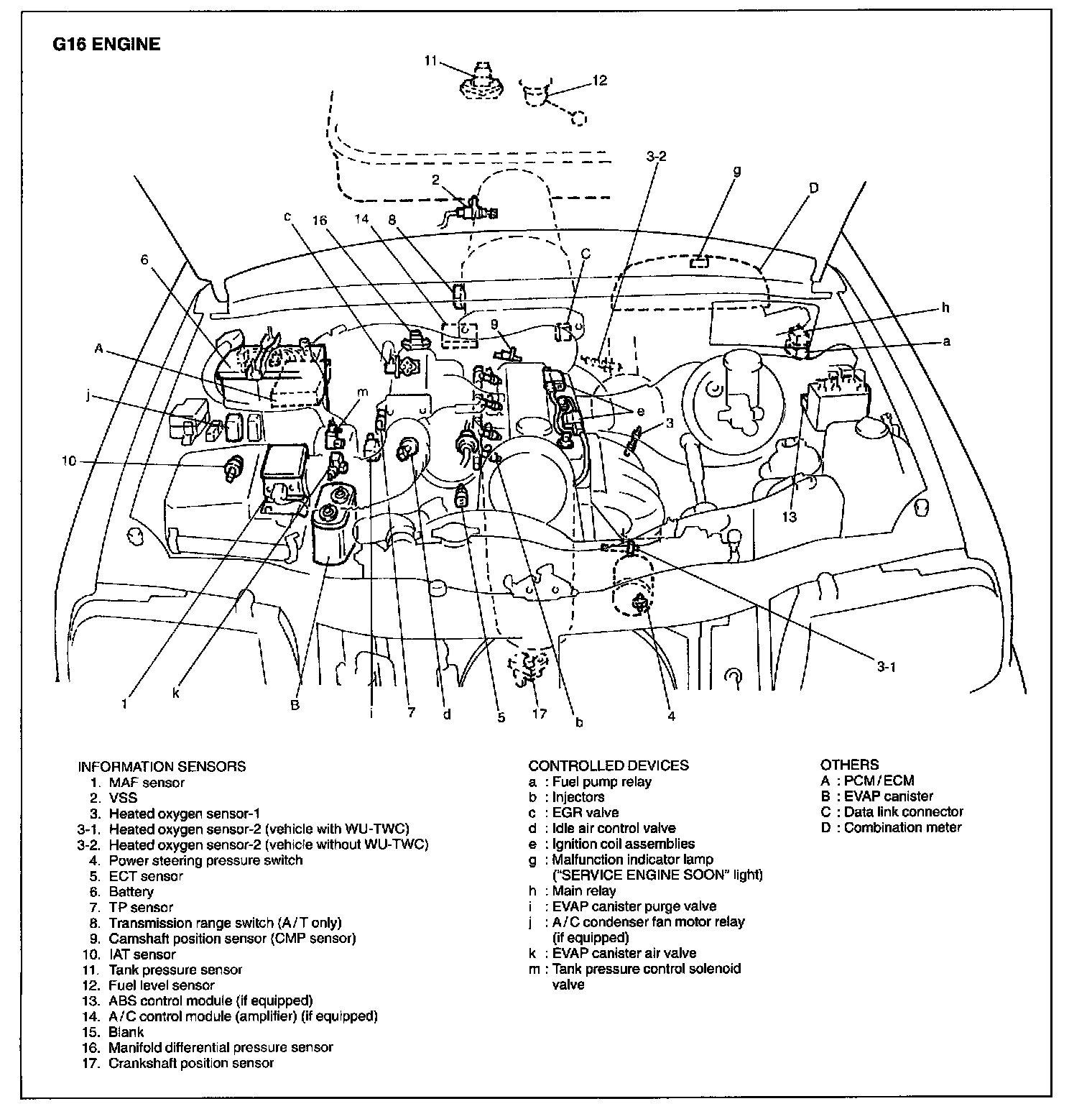 The electronic control system consists of 1) various sensors which detect the state of engine and driving conditions, 2) ECM (PCM) which controls various devices according to the signals from the sensors and 3) various controlled devices.