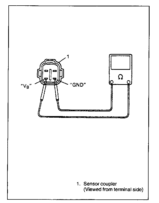 2. Using ohmmeter, measure resistance between terminals "Ve" and "GND" of sensor coupler.