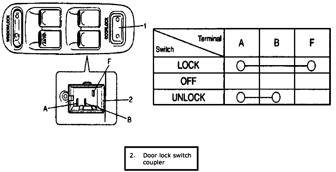 Inspect continuity at terminals according to the door lock switch (1) action.