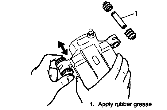 If it is found faulty, correct or replace. Apply rubber grease to slide pin (bolt) outer surface. Rubber grease should be the on whose viscosity is less affected by such low temperature a - 40°C (40°F).