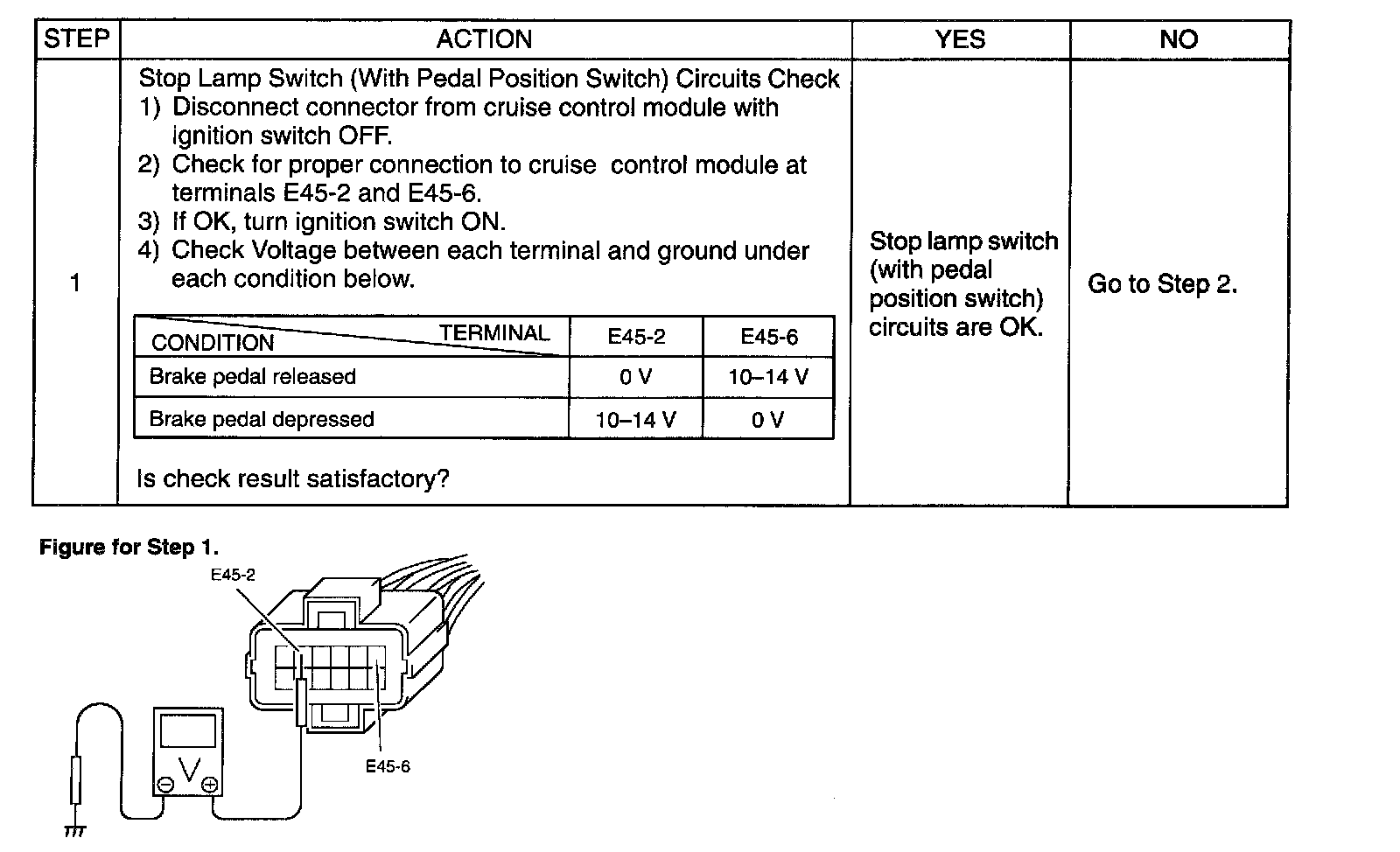 Stop Lamp Switch (With Pedal Position Switch) Circuits Check (Step 1):