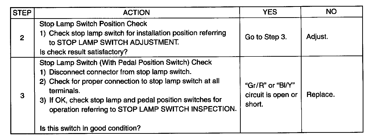 Stop Lamp Switch (With Pedal Position Switch) Circuits Check (Step 2 - 3):