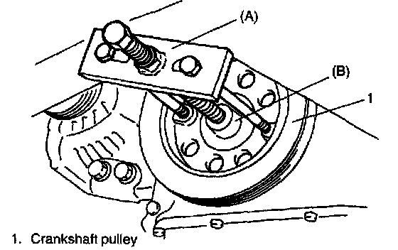 10. Install crankshaft pulley. To lock crankshaft pulley, use special tool (camshaft pulley holder) with it.