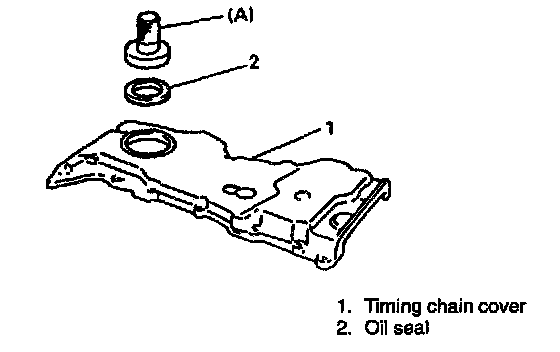 NOTE: When installing new oil seal, drive it in until its surface is flash with edge of timing chain cover.