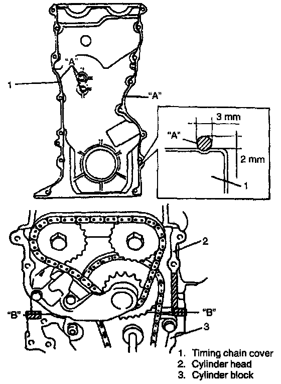 - Clean sealing surface on timing chain cover, crank case, cylinder block and cylinder head.