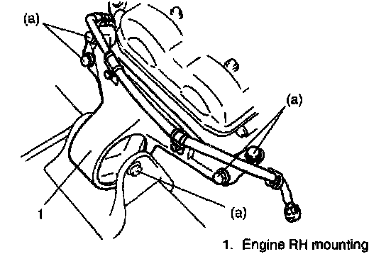 6. Install engine RH mounting. Tighten bolts and nut to specified torque.