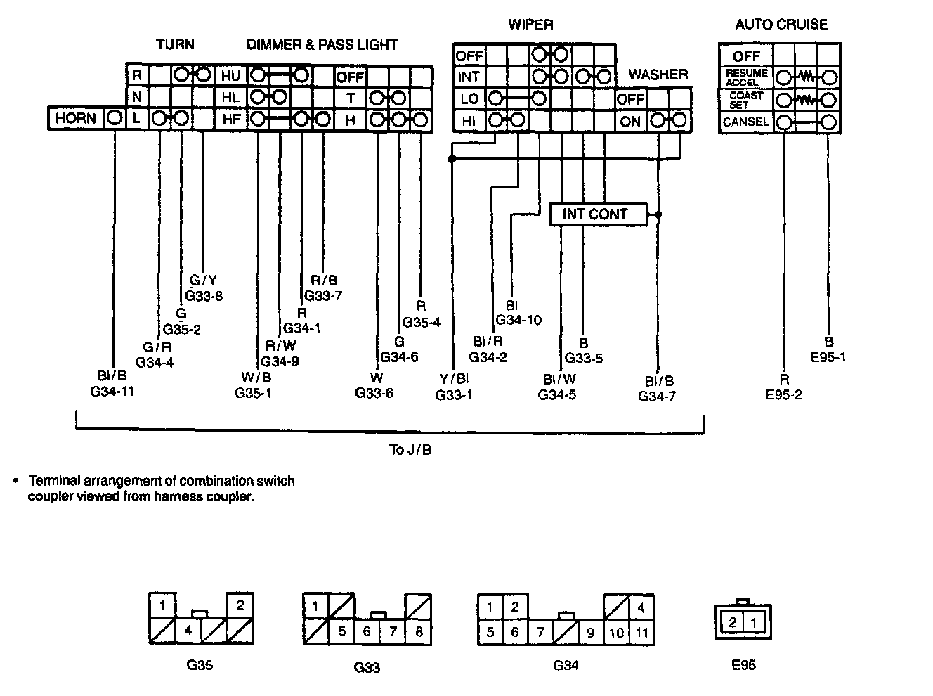 1. Disconnect negative cable at battery.2. Disconnect combination switch lead wire connectors from junction/fuse block.