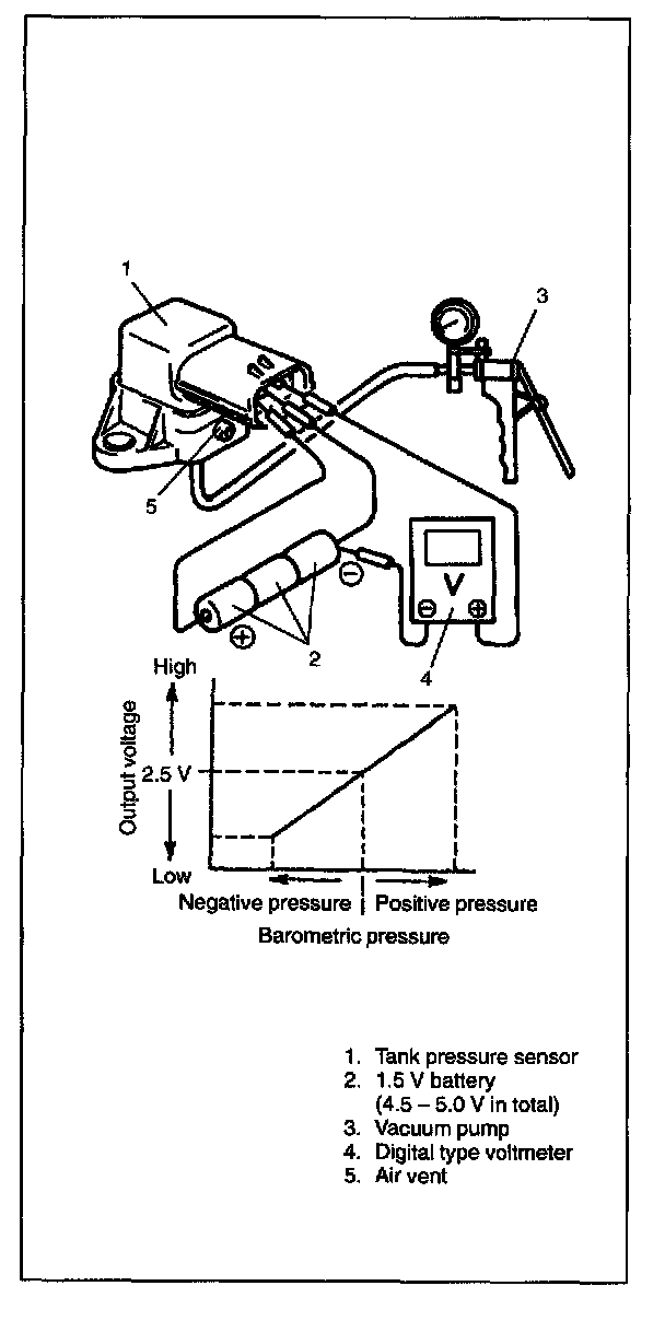 - Do not apply pressure higher than 98 kPa (742 mmHg) to tank pressure sensor by hand pump. Applying excessive pressure will break it.