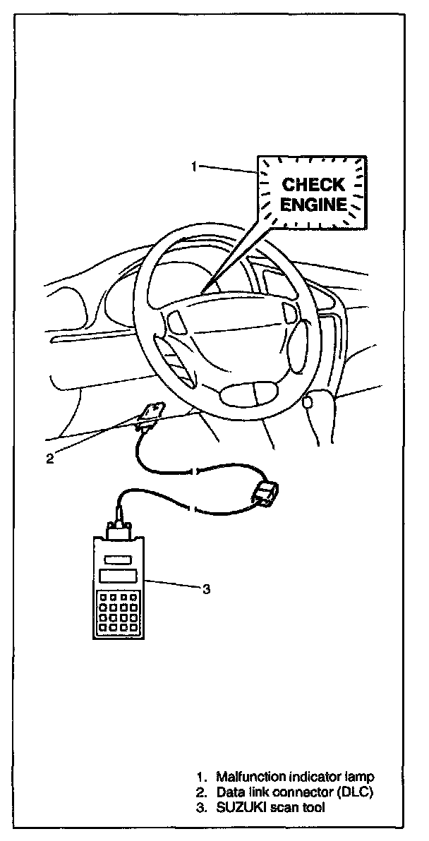- It is possible to communicate by using not only SUZUKI scan tool but also OBD-II generic scan tool which are in compliance with 5AEJ1978. (Diagnostic information can be accessed by using a scan tool.)