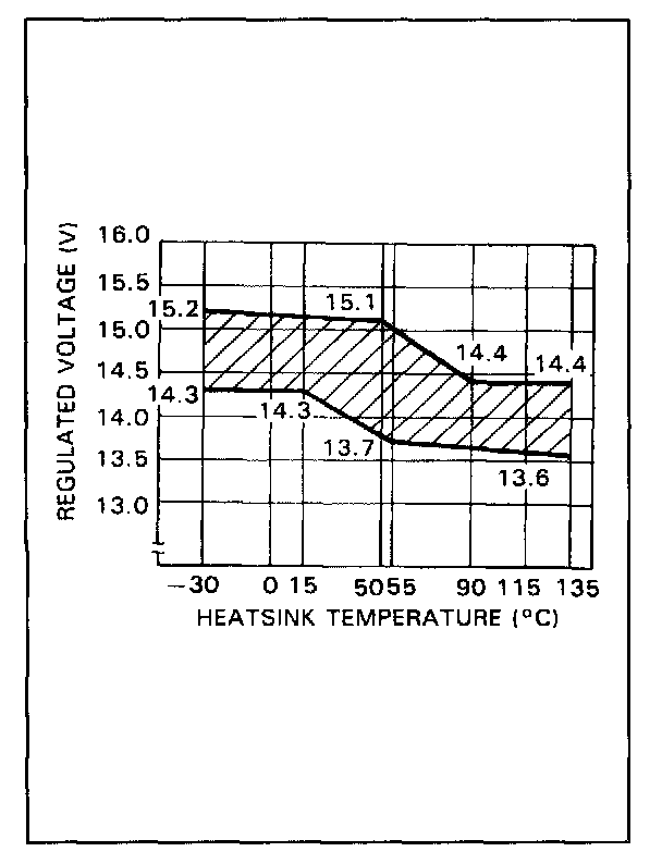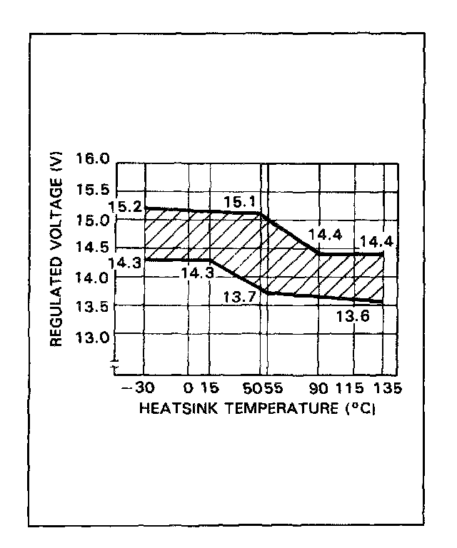 NOTE: Consideration should be taken that voltage will differ somewhat with regulator case temperature as shown in the figure.