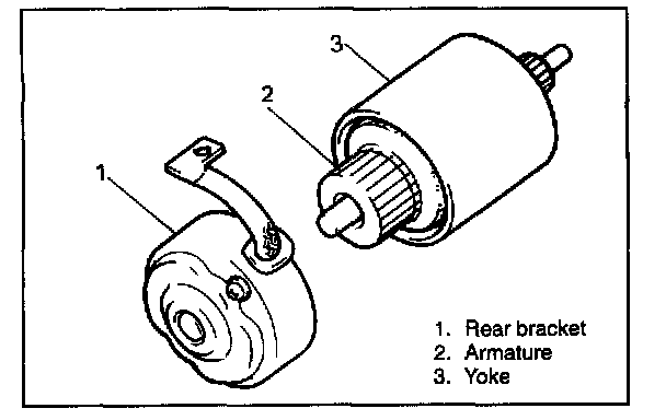 14. Install yoke, armature, brush holder and rear bracket to front housing by aligning match marks provided before removal.
