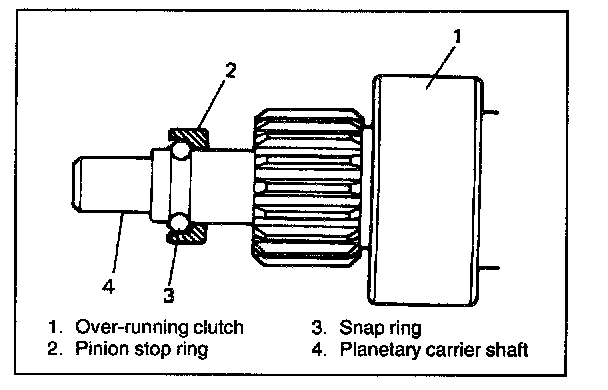 9. Install over-running clutch assembly to planetary carrier shaft, using care for installing direction of pinion stop ring.