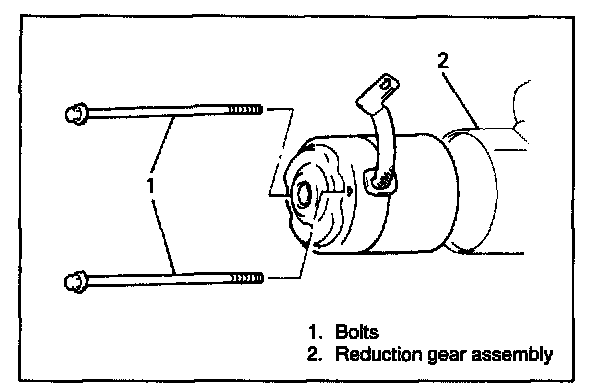 2. Remove 2 bolts shown in figure, then separate reduction gear assembly from starting motor assembly.