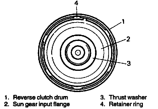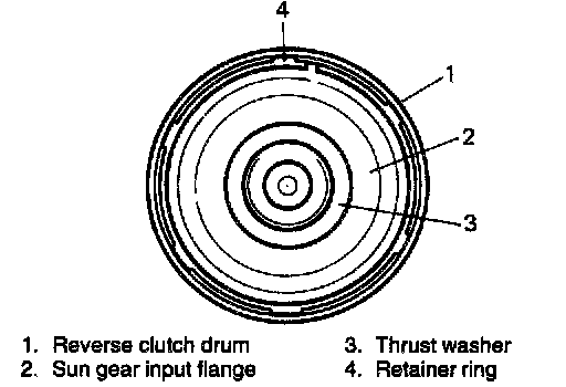 1. Remove sun gear input flange with thrust washer installed by removing retainer ring.